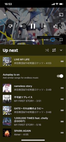Apple MusicからYouTube Musicに移行したのですが、一つだけ不満がありました。 それが1曲リピート再生です。 まさか出来ないのかよと思ったのですが、出来ます。 まず、再生したい曲を選択します。 それから下から上へスワイプして再生予定一覧を表示させま…